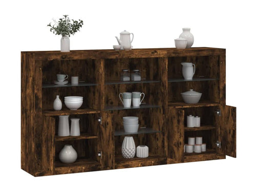 Upholstered bed 180x200 cm with two bedside tables with storage space, grey and black linen 82214FMGF -